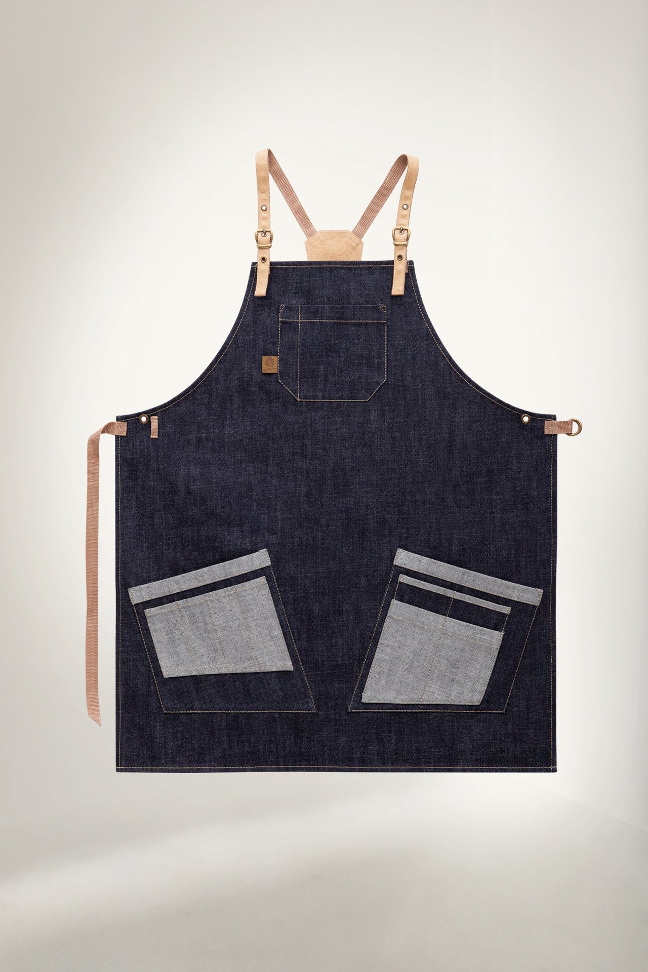 Command attention with the Barber apron, crafted from premium dark denim with striking grey contrast pockets. This isn't just workwear—it's a statement piece that combines rugged durability with modern design details. The genuine leather straps and metal hardware add a refined touch that sets you apart.