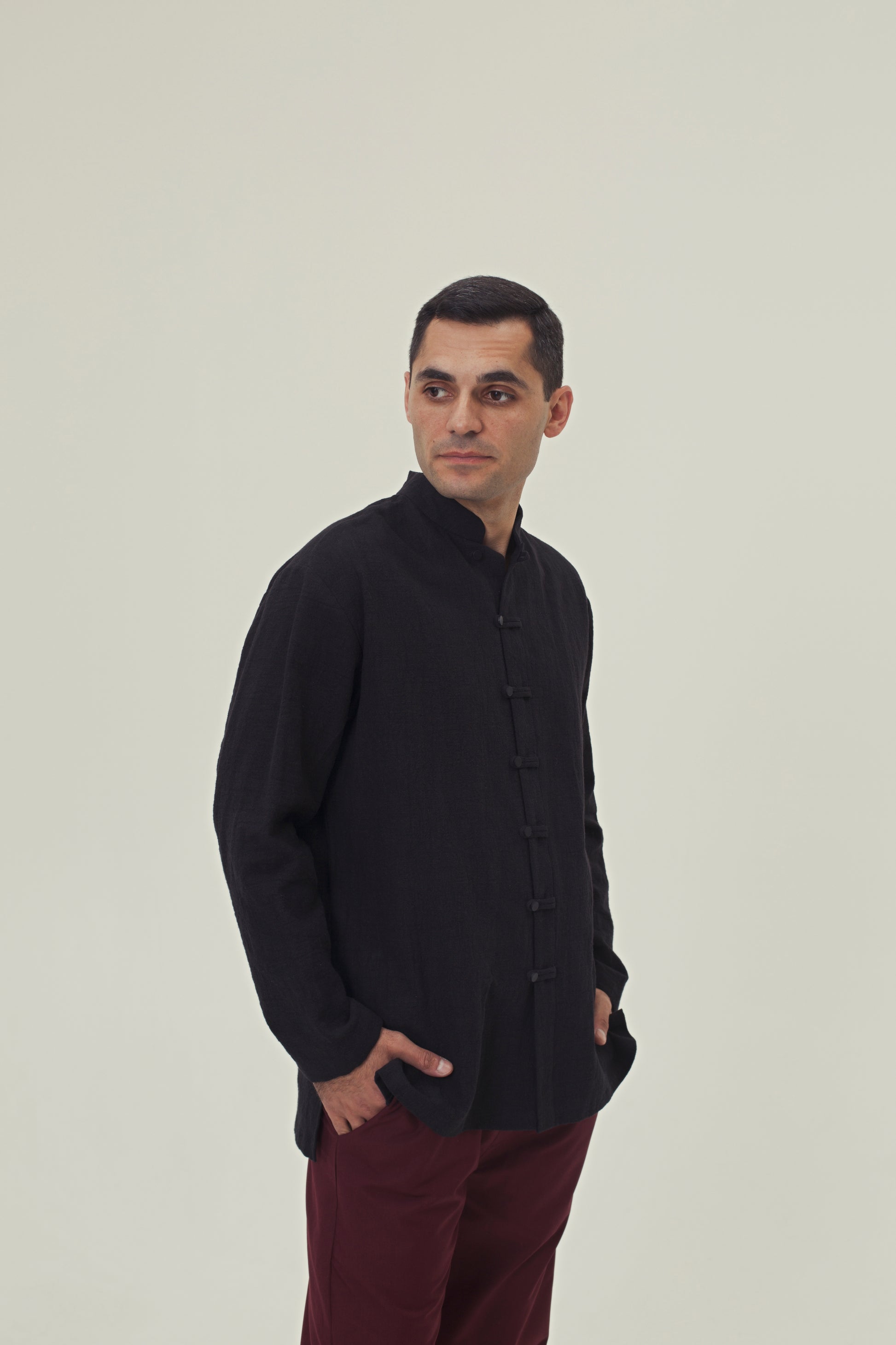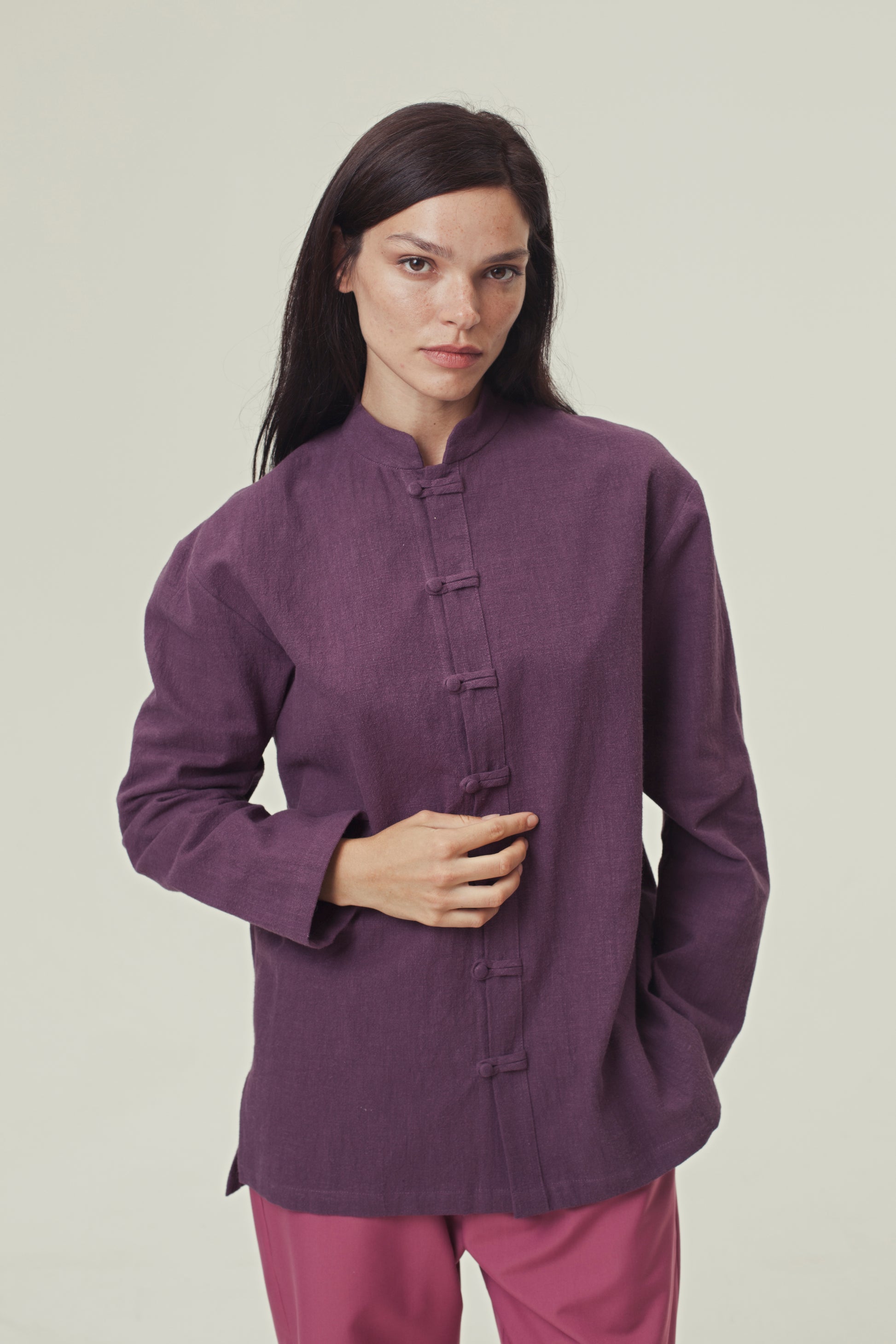 Specs: 100% natural nettle fabric | 240-250 g/m² density | Mandarin collar | Frog button closures | Available in 4 colors