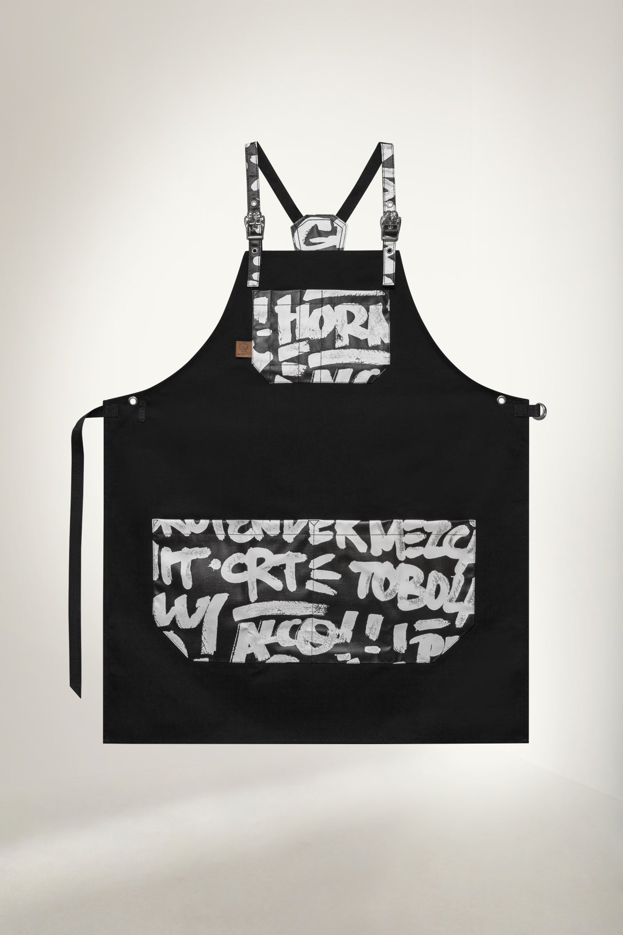 Introducing the Barista, where street art meets professional workwear. This striking apron combines a sleek black cotton base with eye-catching leatherette pockets featuring our exclusive Mexico-inspired "Hola" print. The bold graphic design makes a statement while the practical construction keeps you protected and organized throughout your shift.