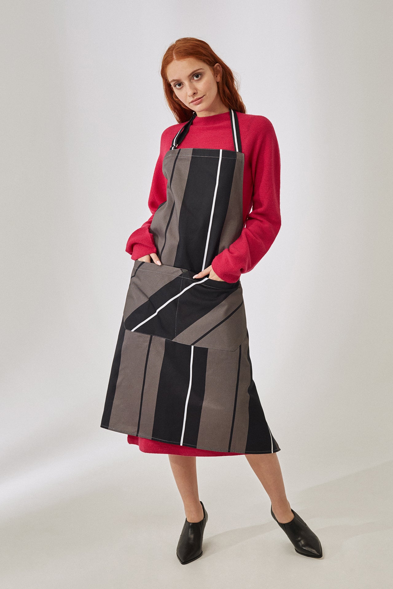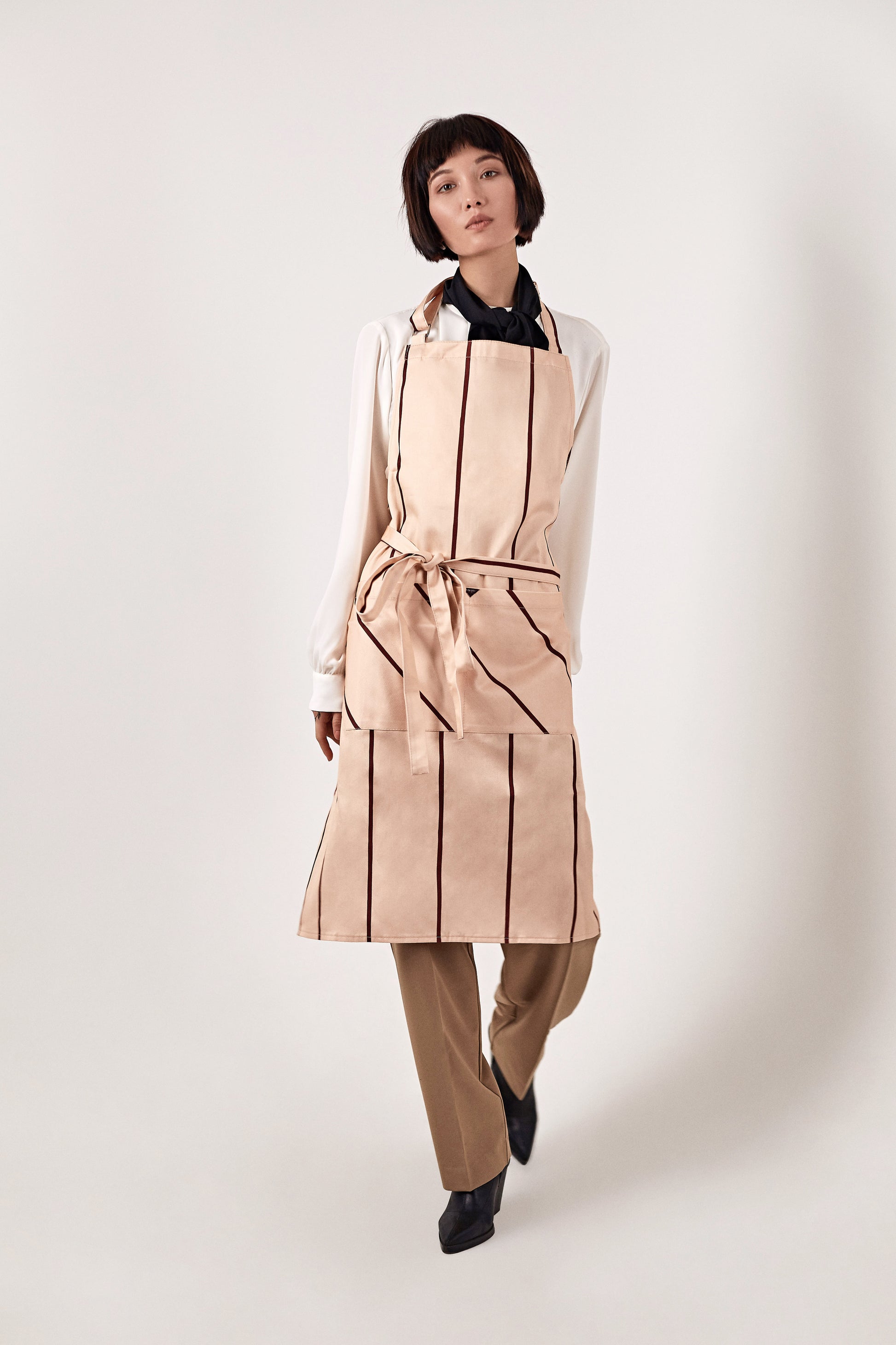 The Chef Stripe Collection proves that functional design and refined aesthetics go hand in hand. Premium cotton twill, elegant stripes, clean silhouette. This is the apron for professionals who appreciate straightforward functionality and workwear that projects sophistication. Nothing unnecessary, everything essential, elegantly refined.