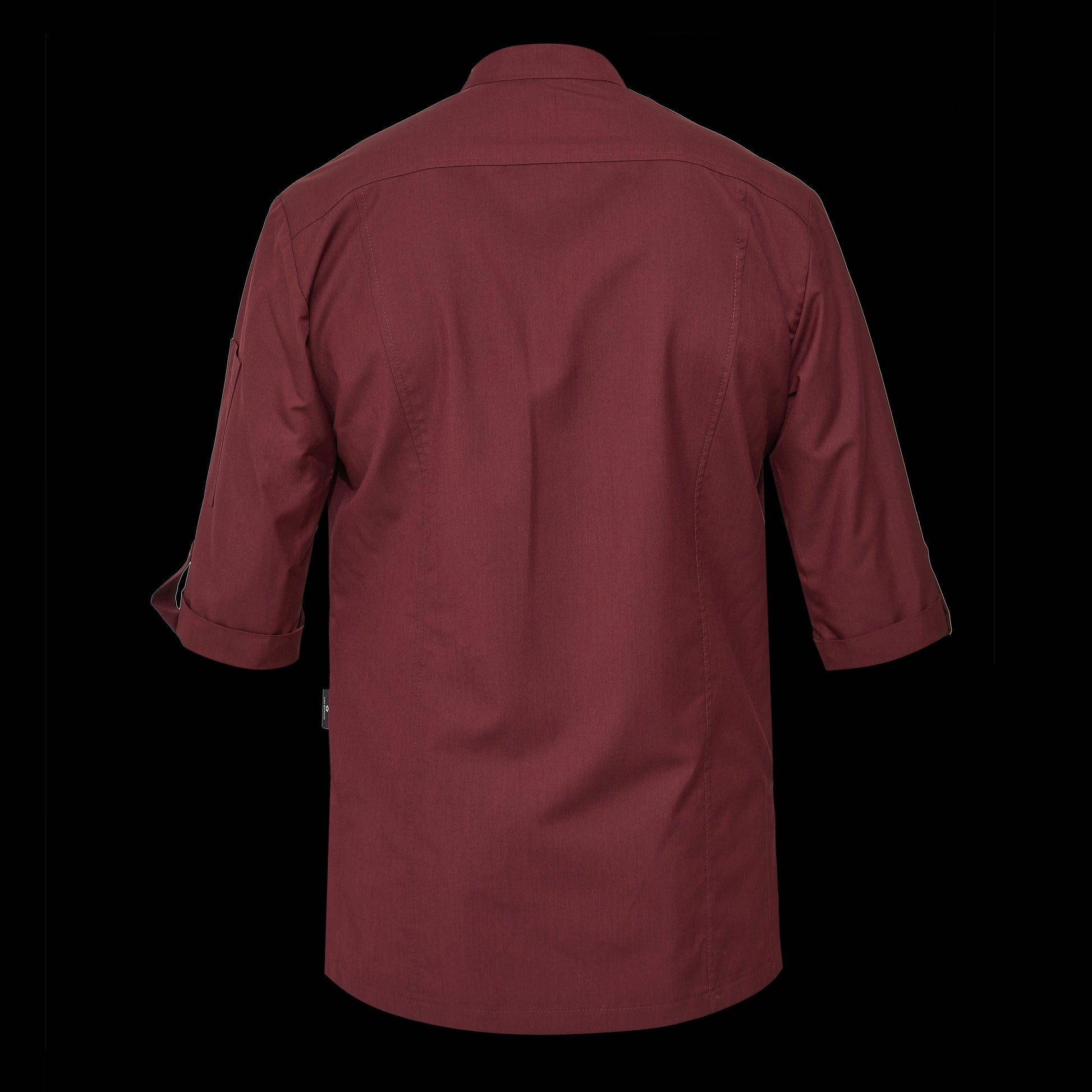 The lightweight poplin fabric drapes smoothly and moves with you, never causing irritation even during long shifts. The breathable structure maintains a comfortable microclimate, preventing overheating in hot kitchen environments. The three-quarter sleeves with adjustable tabs keep your forearms free for hands-on work while allowing you to roll sleeves up or down as needed.