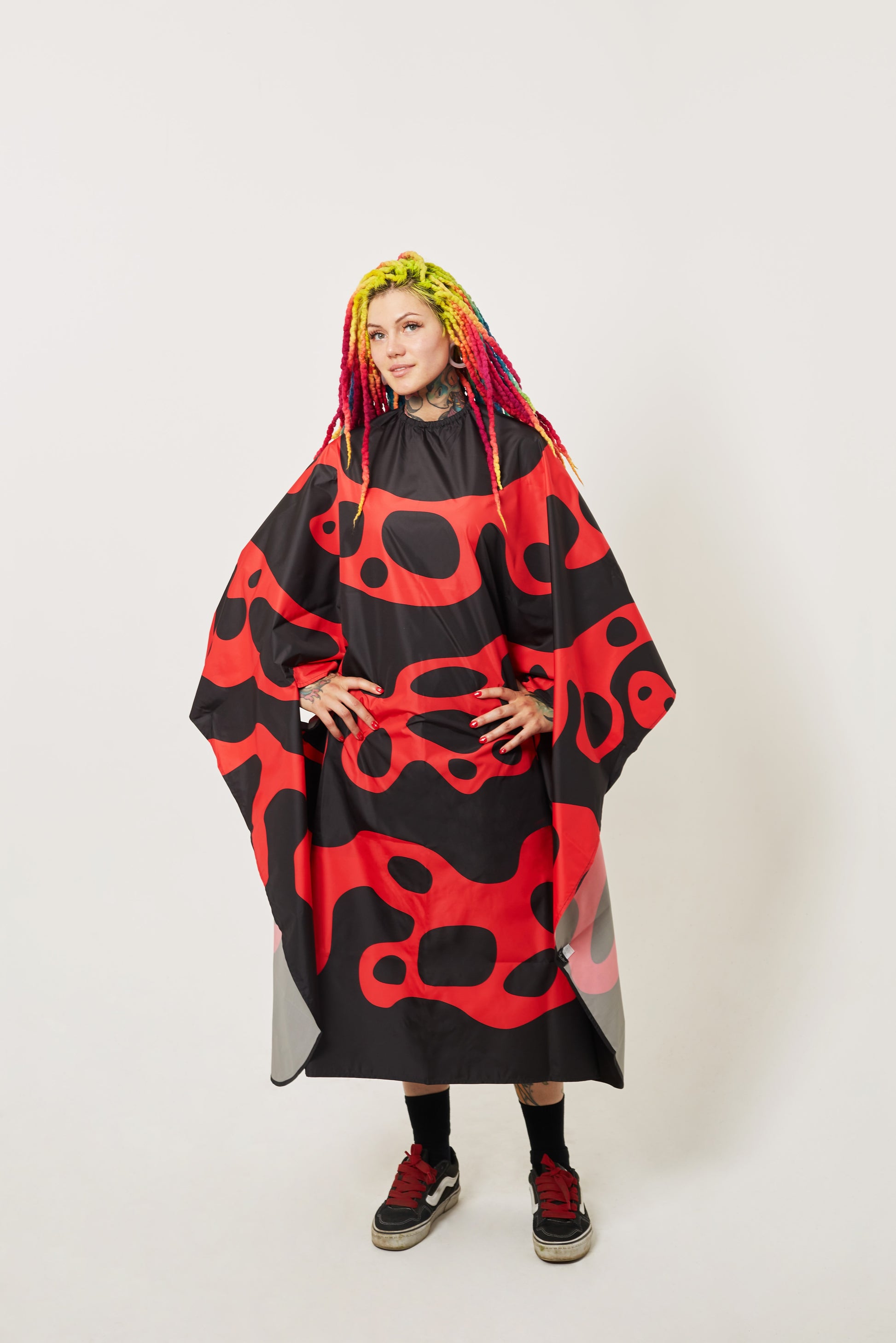 The Frog cape draws inspiration from poison dart frogs—small, vibrant amphibians whose electric colors serve as nature's warning system. From electric blue with purple spots to rainbow gradient patterns, neon green to vibrant multi-color designs, each print captures the bold, unapologetic beauty of these incredible creatures. Just like the frogs that inspired them, these prints make an unforgettable statement.