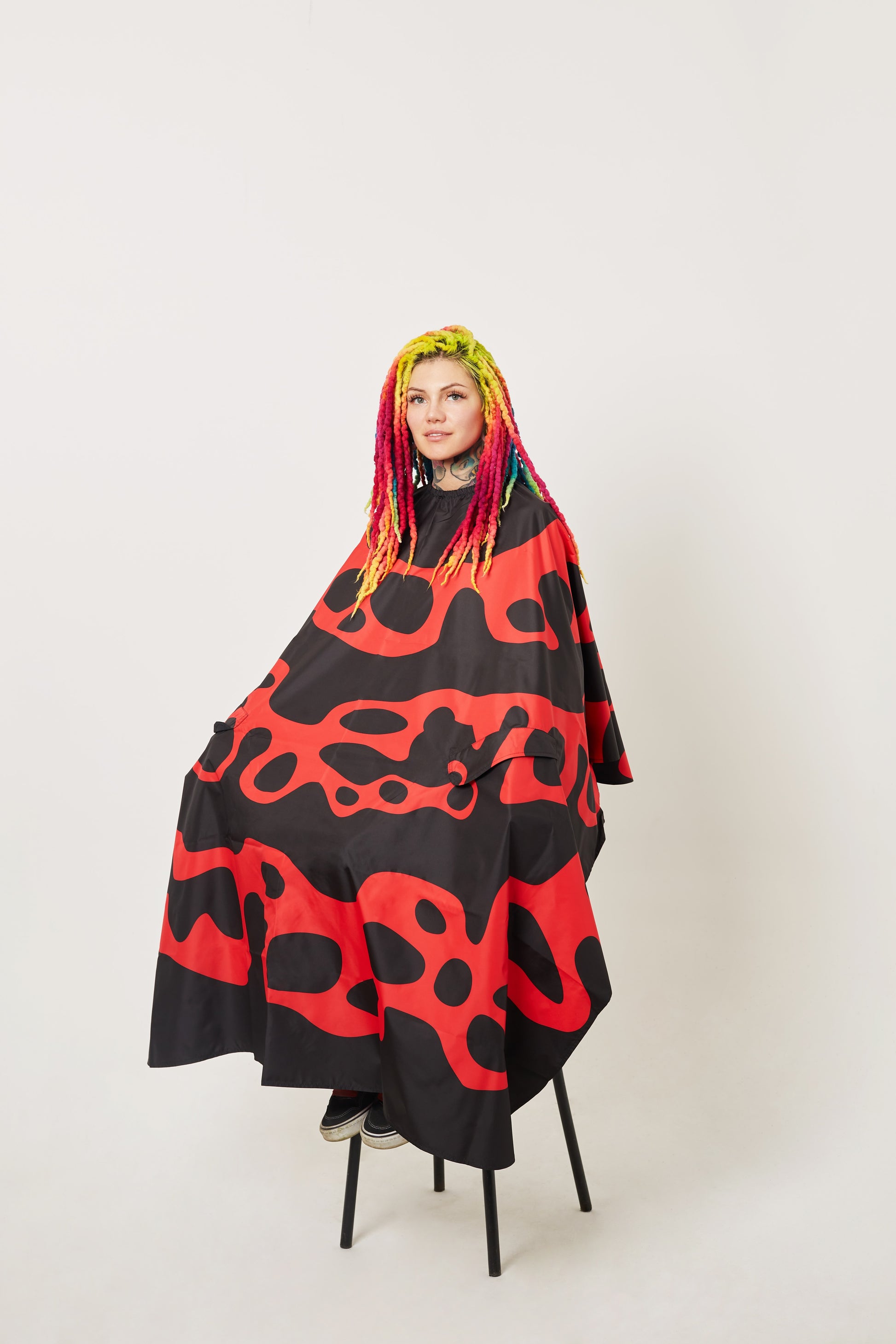 The Frog cape is inspired by the vibrant, electric colors of poison dart frogs—nature's most striking creatures. Crafted from waterproof Oxford fabric with polyurethane coating, this cape delivers reliable protection from hair, moisture, and chemical treatments while showcasing bold, nature-inspired prints that reflect your unique style and fearless approach to your craft.