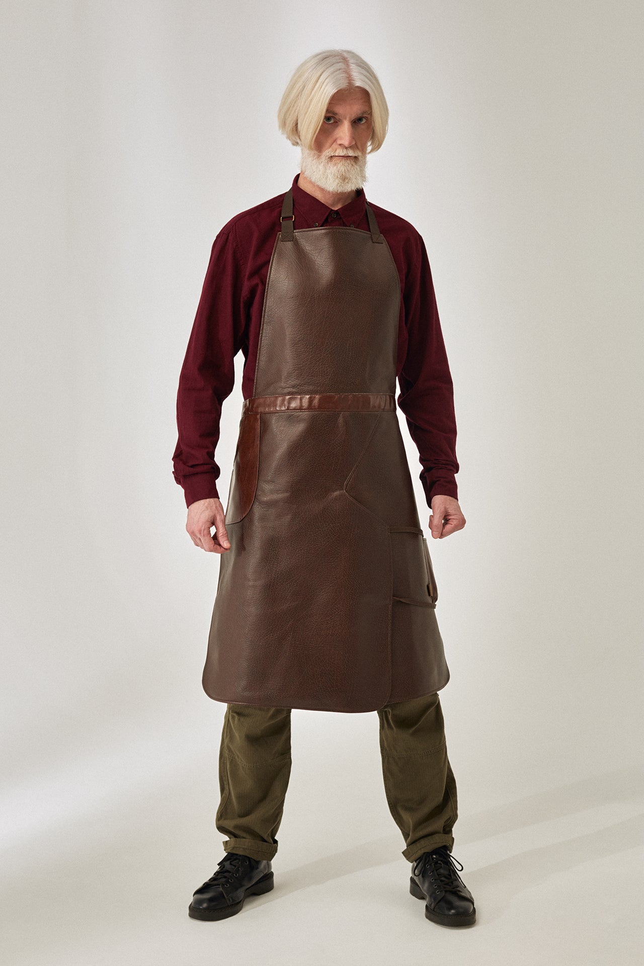 The Juggernaut is our most innovative leatherette apron—featuring a revolutionary split-leg design that provides unprecedented freedom of movement. Crafted from premium 600 g/m² leatherette with a 100% cotton lining, this apron combines striking aesthetics with exceptional comfort and durability. Available in white, grey, black, brown, burgundy, and orange.