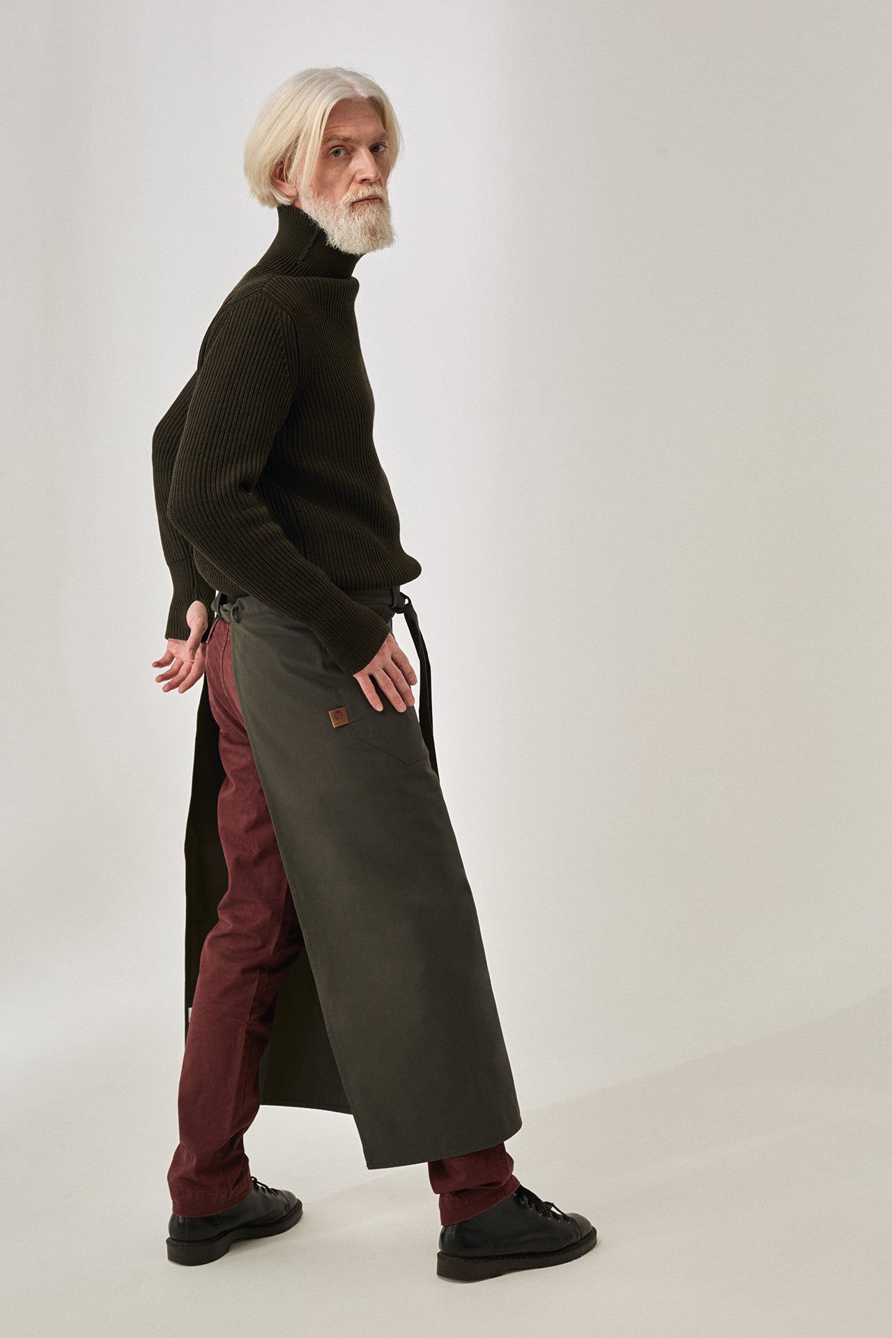 The Rook is our chess-inspired canvas apron—featuring a unique wide-leg split design that combines elegant silhouette with maximum freedom of movement. Crafted from durable canvas with a distinctive center split and adjustable waist ties, this apron delivers both style and functionality. Available in black, brown, olive, and beige.