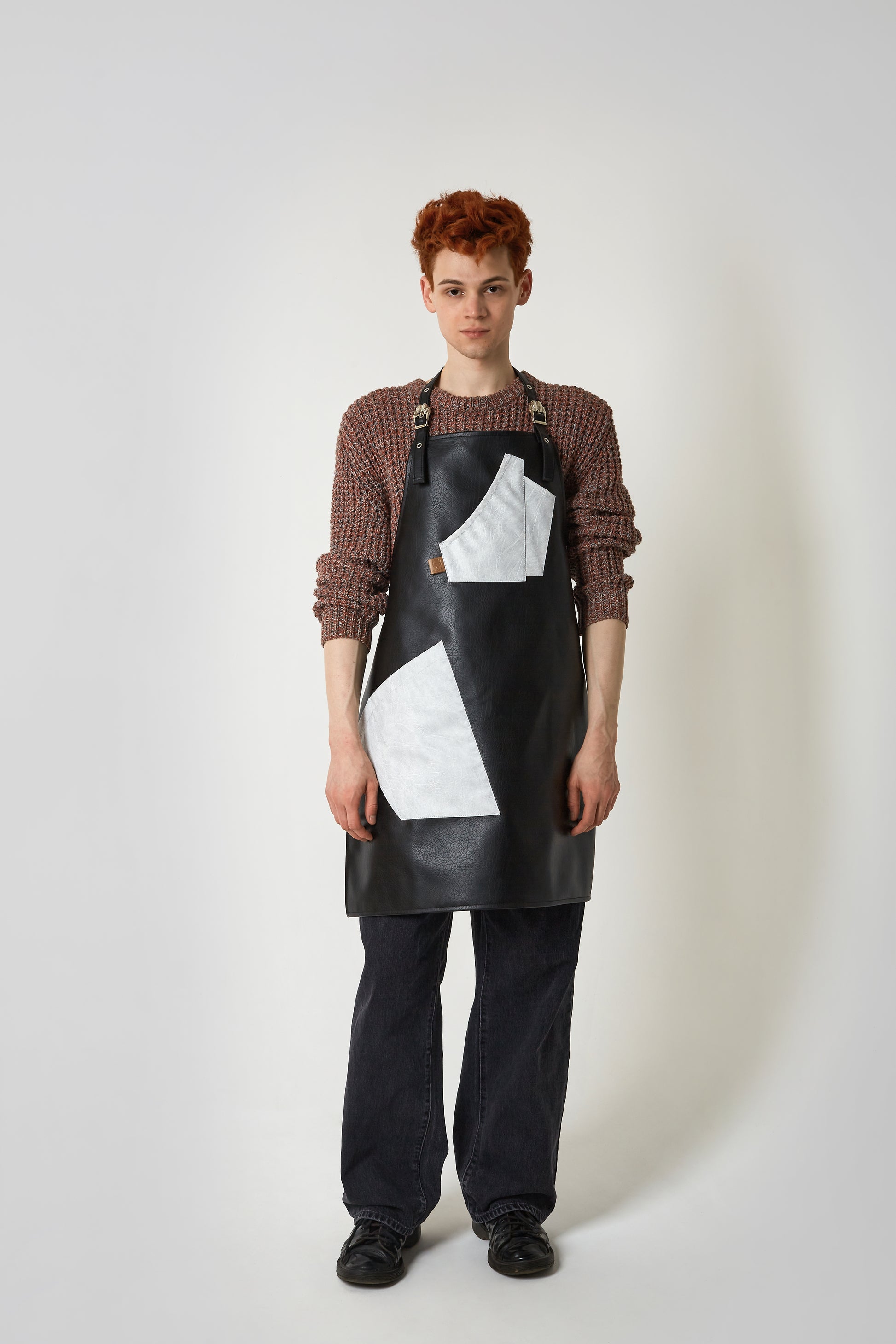 The Yin & Yang is visually striking apron—a full-coverage design that combines contrasting leatherette panels in a modern, geometric composition. More than just workwear, this is a conversation piece that reflects the duality of craft: precision and creativity, tradition and innovation, form and function.